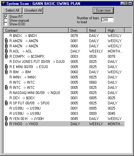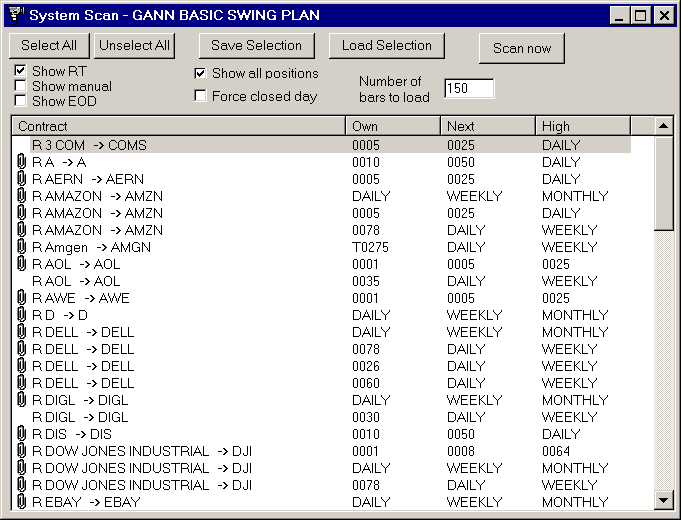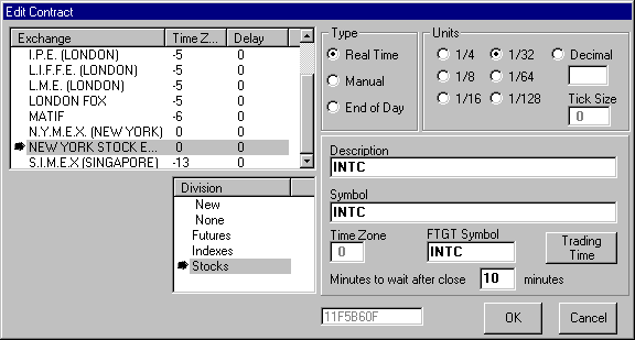 Example : R,INTC,78,D,W will open the Real Time contract that has the symbol INTC