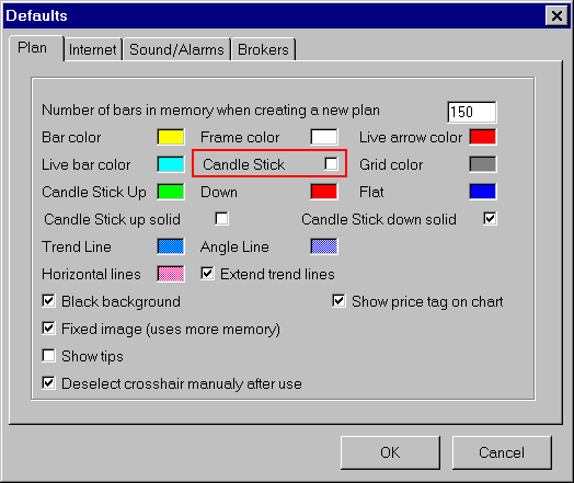 Open the options window (click on the Fibonacci Trader name on the chart) , you will have