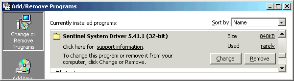 Click on Start, Settings, Control Panel, go to Add/Remove programs. Remove any "Sentinel System Driver" you can find.